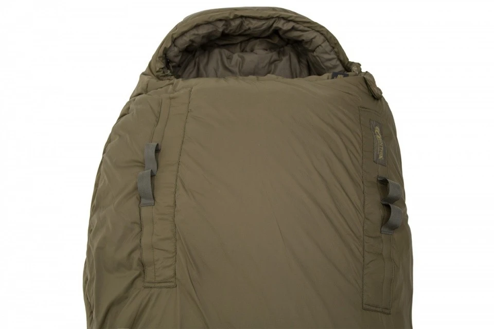 Le sac de couchage Wilderness est doté de manches rétractables permettant une mobilité maximale des bras. Ce concept a été développé pour un usage militaire mais s’avère particulièrement adapté au bivouac hivernal. Lorsqu’il fait très froid, il est plus facile et confortable d’utiliser les manches rétractables que de devoir sortir du duvet. On peut d’ailleurs utiliser le Wilderness comme une parka, en ouvrant le sac de couchage par le bas.