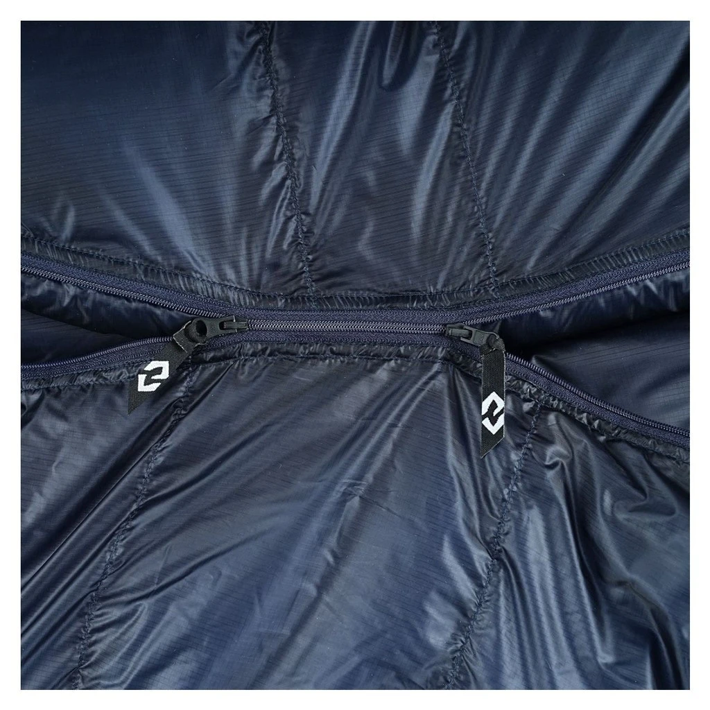 Ce sac de couchage minimaliste dispose d’un zip 2/3 YKK double curseur et d’une capuche enveloppante avec sangle de serrage.