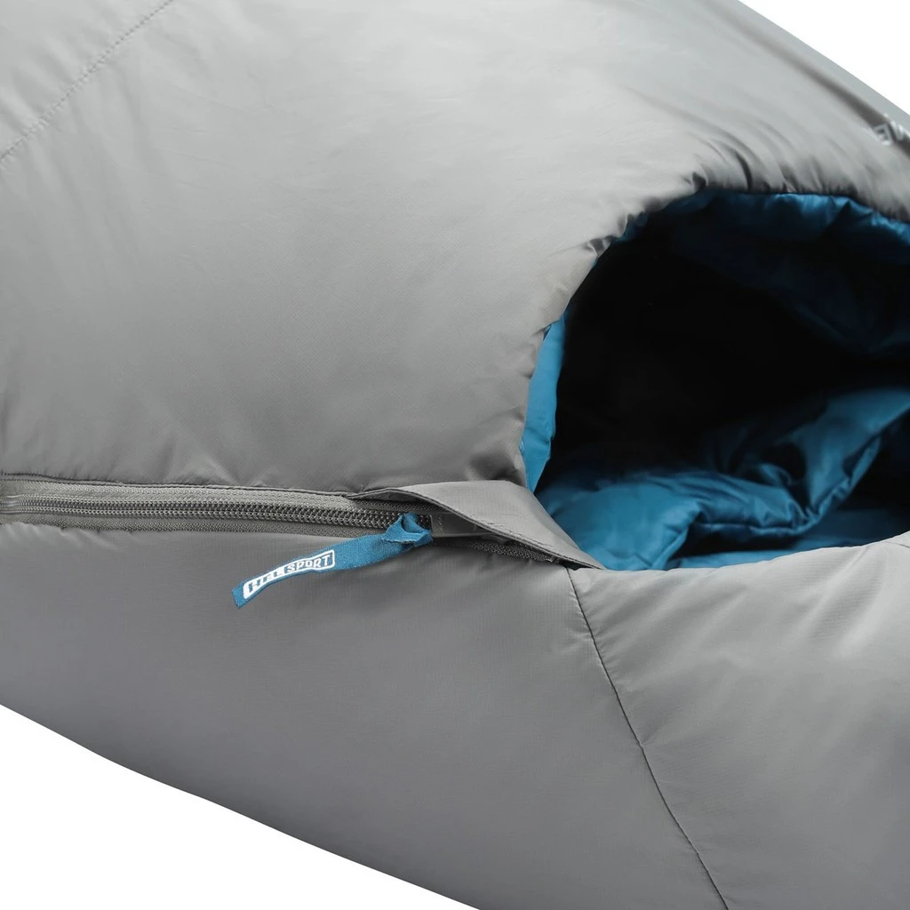 Pour maximiser ses performances thermiques, ce sac de couchage mise sur une coupe étroite et des barrières anti-froid, afin de bien garder votre chaleur corporelle à l’intérieur. Le rabat le long de la fermeture éclair, la collerette et les boudins autour de la capuche sont généreux et assurent cette barrière thermique. Des cordons de serrages et un bouton pression permettent de bien les maintenir en place. Pour ventiler, la fermeture éclair est dotée d’un double curseur.