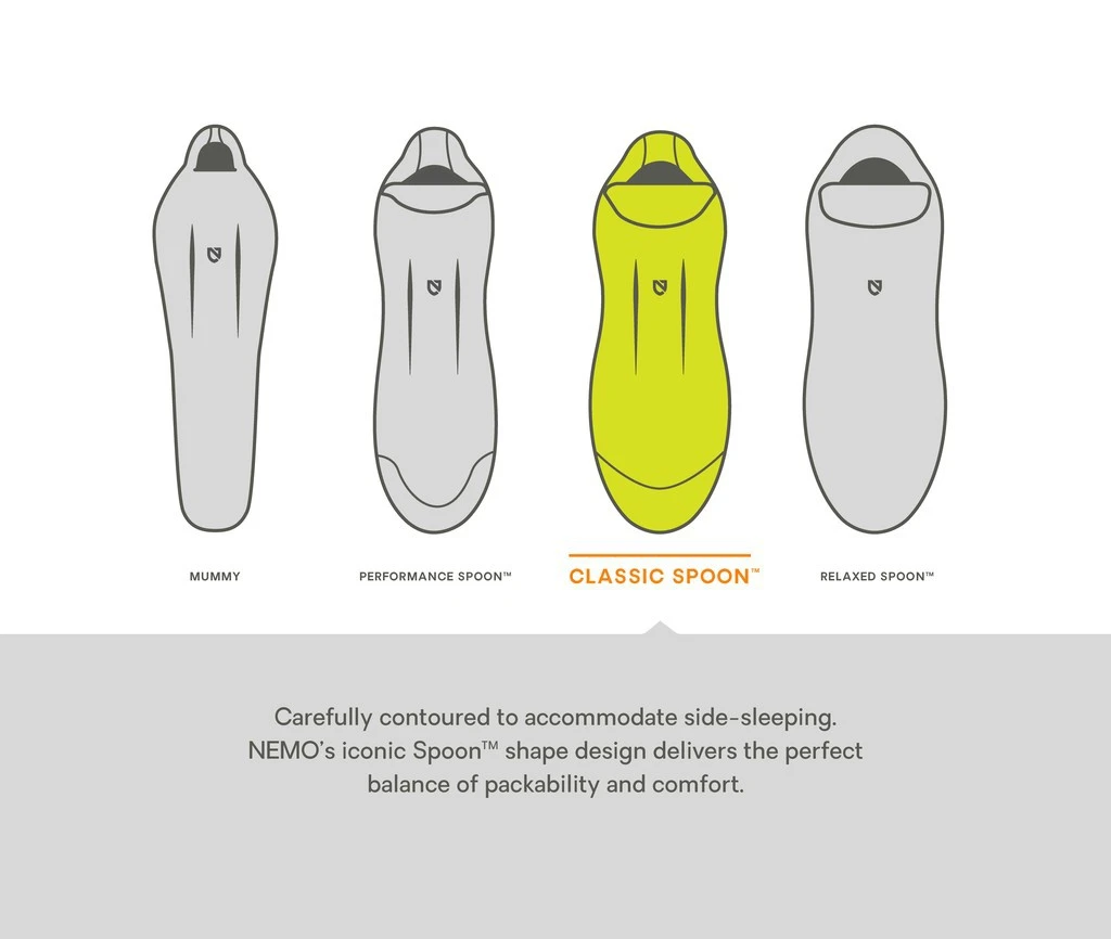 Le Disco Women’s 30 de Nemo est un sac de couchage pour femme, confortable, conçu pour un usage 3 saisons. Celles qui se sentent à l’étroit dans les sacs de couchage traditionnels de forme momie, apprécieront la forme particulière en cuillère du Disco Women’s 30. Elle permet d’obtenir plus d’espace au niveau des coudes et des genoux, il est idéal pour dormir sur le côté.