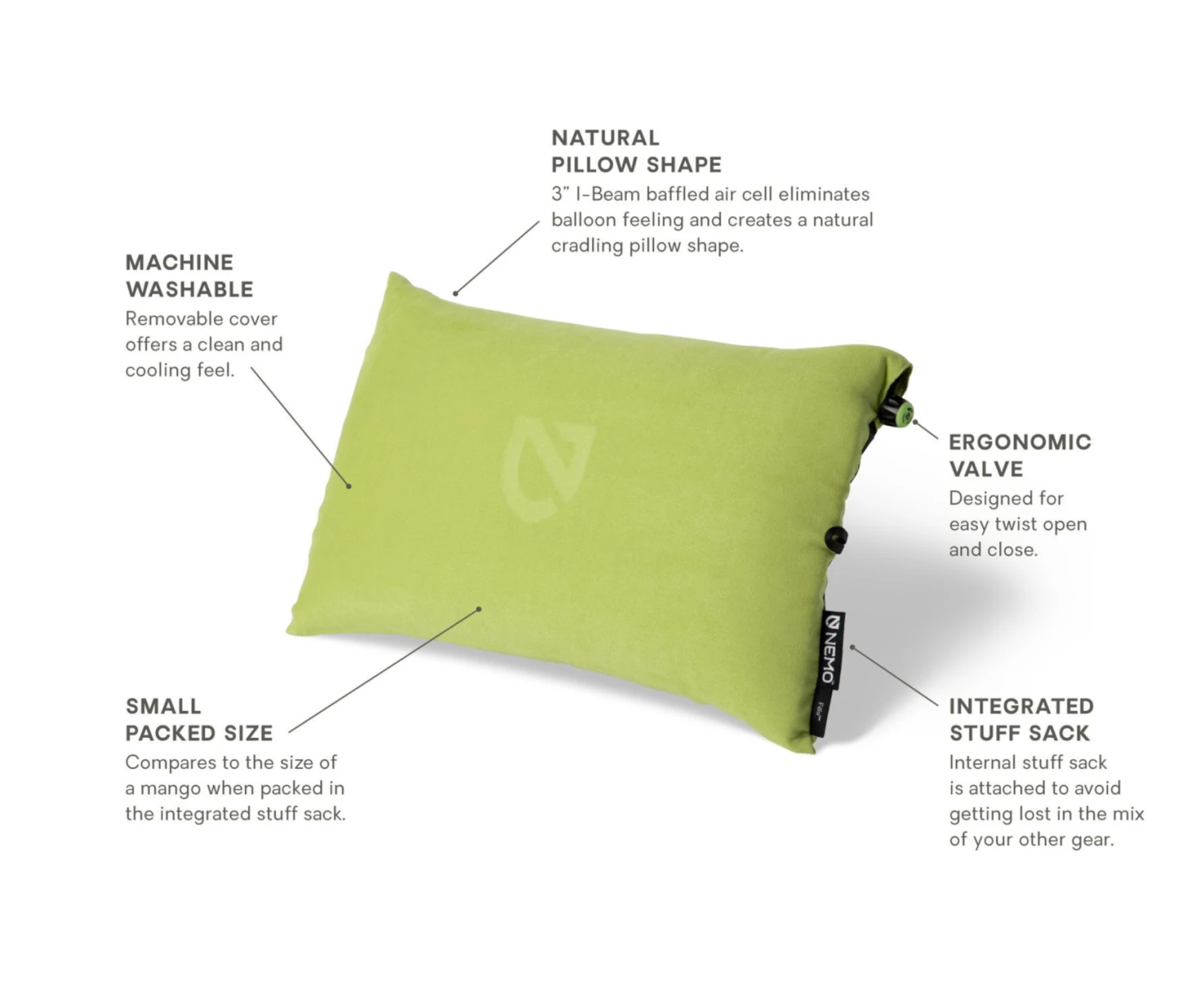 Le Fillo de Nemo est un oreiller gonflable très confortable. Il est doté d’une structure gonflable et d’une couche épaisse en mousse. Cette combinaison donne une sensation d’amorti et offre la possibilité de régler la hauteur du coussin. La housse de rangement est directement intégrée dans le Fillo.