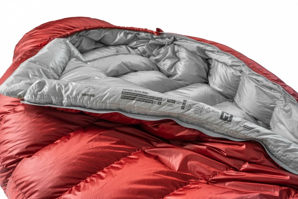Le Dpro 890 de la marque tchèque Patizon est un sac de couchage à utiliser en 3 ou 4 saisons suivant sa frilosité. Il est garni avec 890 grammes de duvet de canard européen hypoallergénique de 700 cuin+, 90/10, certifié RDS. La répartition de celui-ci est homogène, 50% sur le dessus, 50% sur le dessous. L’enveloppe du sac de couchage est confectionnée avec des chambres en Z afin de garantir une isolation optimale. Grâce à cela, il affiche une température de confort de -9°C.