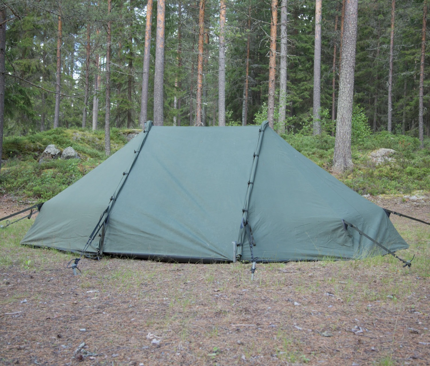 Avec l’ensemble des composants, la Savotta Hawu 4 est une tente pouvant accueillir jusqu’à 6 personnes.