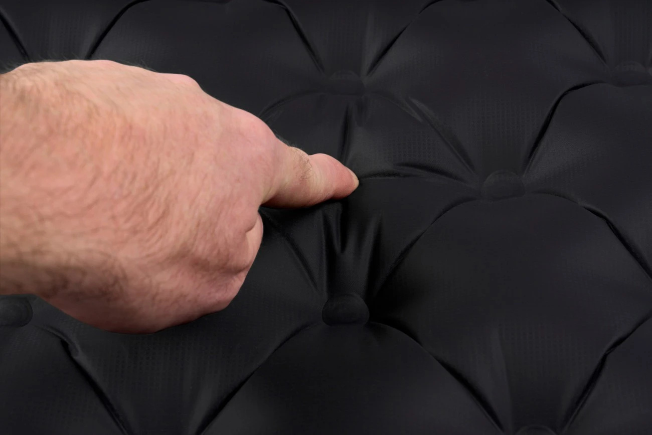 Pour obtenir une épaisseur de 10 cm, Sea To Summit utilise des boucles en TPU pour connecter les couches de tissu supérieures et inférieures. Ces boucles permettent de créer de plus grandes poches d’air lorsque le matelas est parfaitement gonflé.