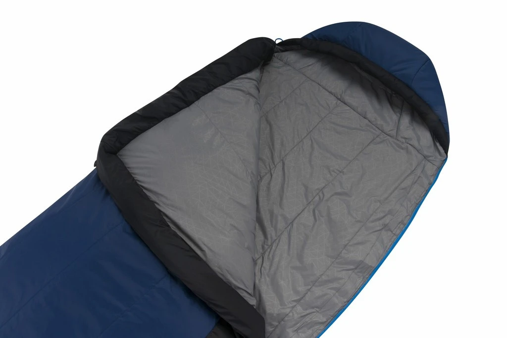 Sac de couchage synthétique, construction simple et fiable, idéal pour le camping ou les randonnées occasionnelles.