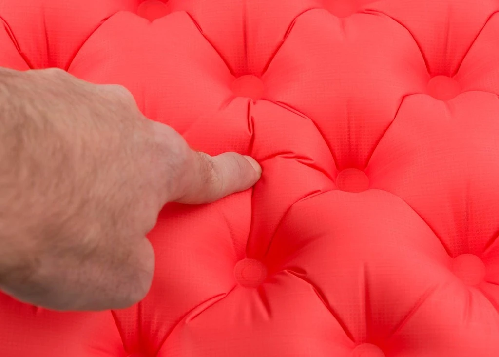 Au niveau de la tête, l’attache PillowLock permet de fixer un oreiller Aeros Sea to Summit à votre matelas pour le tenir en place toute la nuit. (Oreiller vendu séparément).