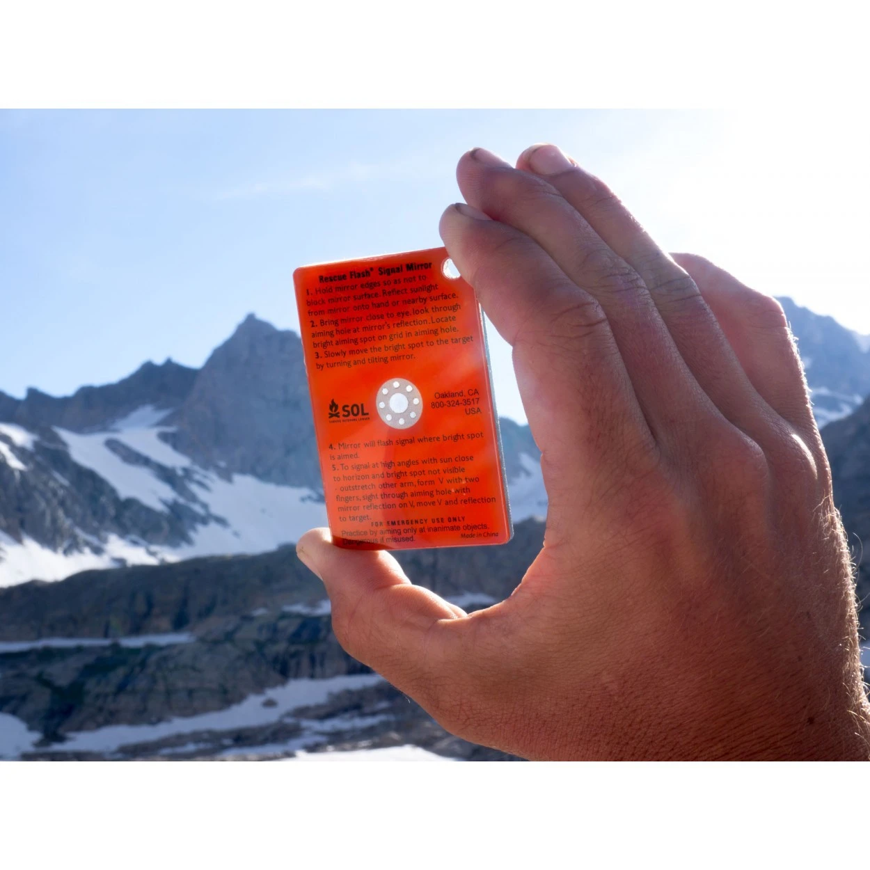 Le Rescue Flash Signal Mirror de SOL est un miroir de signalisation lumineux permettant d’être visible jusqu’à 50 km. Le viseur rétroréfléchissant permet d’envoyer des signaux à des cibles éloignées. Fabriqué en polycarbonate (Lexan), ce miroir est léger et résistant aux chocs et à l’humidité.