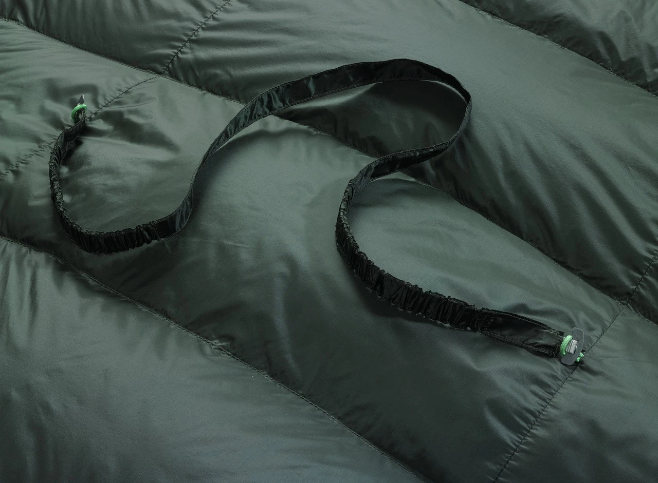 - Connecteurs SynergyLink : sangles amovibles qui permettent de connecter un matelas et le sac de couchage pour minimiser les pertes de chaleur. L’avantage de ce dispositif, c’est que vous restez bien bordé toute la nuit et que vous ne risquez pas de glisser en dehors du matelas.
