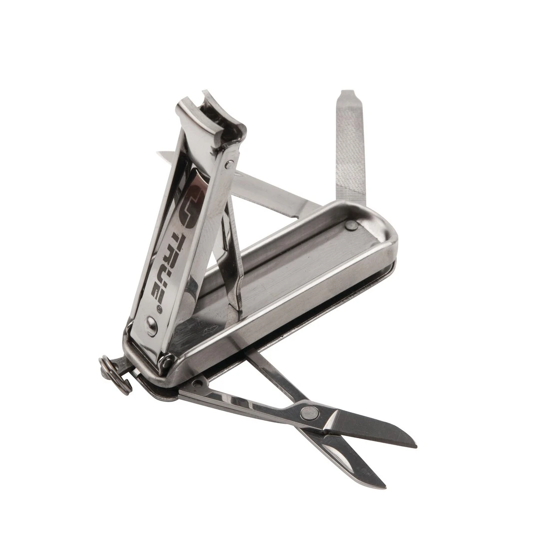 Le Nailclip Kit de True Utility est un kit coupe-ongles incluant une lime à ongles, un tournevis, des ciseaux, un couteau et un porte-clés.